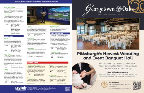 412-914-8299 | leveluppickleballclub. com 33 Mayview Road, Cecil Township