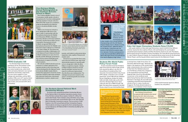 Pine-Richland High School hosted graduation for the 336 members of the Class of 2022 on June 10 . Andrew Ni was named valedictorian , while Amish Sethi and Audrey DeKunder were named salutatorian and tertiary , respectively . This year , seniors applied to 2,407 colleges and universities , and the PRHS Guidance Office sent 2,471 teacher letters of recommendation for members of the Class of 2022 , who earned $ 4,447,350 in scholarships .