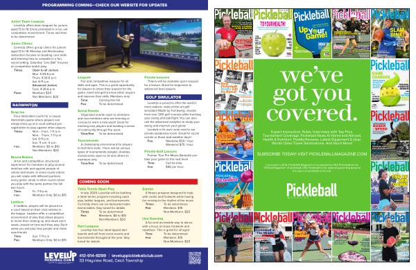 412-914-8299 | leveluppickleballclub. com 33 Mayview Road, Cecil Township