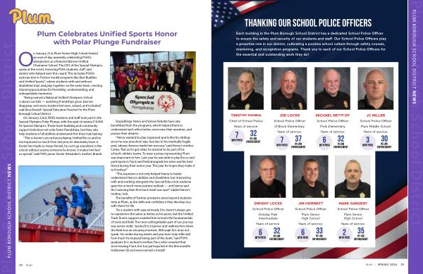 On January 21st, Plum Senior High School hosted an end-of-day assembly celebrating PSHS’ s designation as a National Banner Unified Champion School. The CEO of the Special Olympics spoke at the event, honoring PSHS students, staff, and alumni who helped earn this award. This includes PSHS’ s participation in Partner model programs like Best Buddies and Unified Sports ®, where students with and without disabilities train and play together on the same team, creating shared opportunities for friendship, understanding, and unforgettable memories.