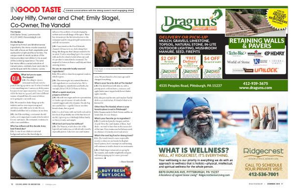 Other than The Vandal , where is your favorite place to eat in Pittsburgh ? E . S .: Unanimously it ’ s Dish Osteria and Bar in South Side . It ’ s a no-brainer .