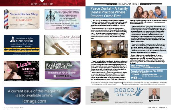 For more information on Peace Dental and all the services available, or to book an appointment today, go to the website at peacedental. com. You can also make an appointment the old-fashioned way by simply calling 412.486.5155. Peace Dental is conveniently located in the heart of Glenshaw at 1509 Mt. Royal Boulevard.