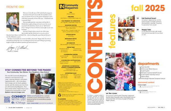 IN Community is a publication dedicated to representing, encouraging and promoting the South Fayette area and its comprising municipalities by focusing on the talents and gifts of the people who live and work here. Our goal is to provide readers with the most informative and professional regional publication in the Commonwealth of Pennsylvania.