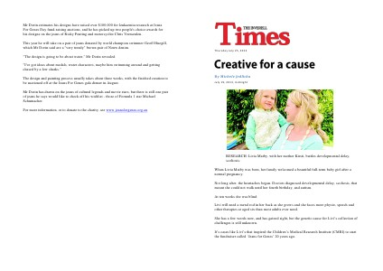 The design and painting process usually takes about three weeks, with the finished creation to be auctioned off at the Jeans For Genes gala dinner in August.