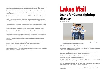 KIDS ' STUFF: Getting involved in Jeans for Genes Day is simple, and money collected will fund children ' s medical research.