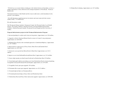 14. Bridge Road widening. Approximate cost: $ 2.5 million.