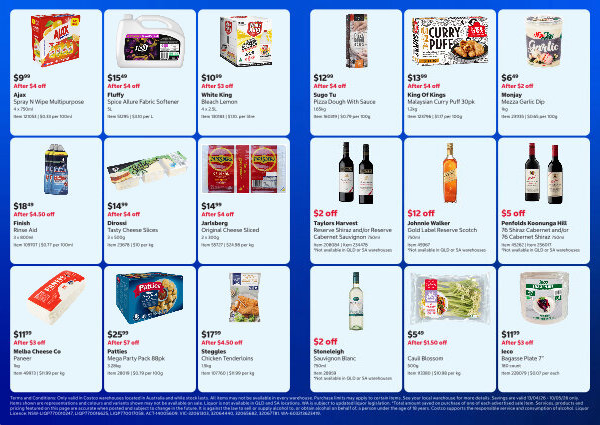 Terms and Conditions: Only valid in Costco warehouses located in Australia and while stock lasts. All items may not be available in every wareh Items shown are representations and colours and variants shown may not be available on sale. Liquor is not available in QLD and SA locations. pricing featured on this page are accurate when posted and subject to change in the future. It is against the law to sell or supply alcohol to, or Licence: NSW-LIQP770010247, LIQP770016625, LIQP770017058. ACT-14005609. VIC-32061303, 32064440, 32065682, 32067781. WA-6032
