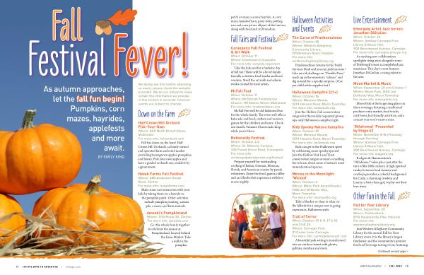 Fall for Your Library When: September 20 Where: Celebrations, 8110 Steubenville Pike, Imperial For more info: westernalleghenylibrary. org