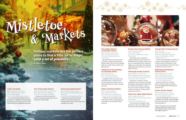 When: December 13, 10 a. m. to 4 p. m. Where: 1047 Shady Avenue, Shadyside For more info: pghartsmedia. org
