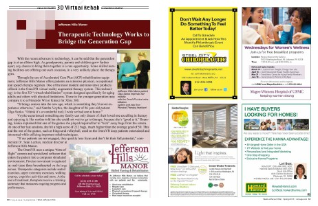 INDUSTRY INSIGHT 60 724.942.0940 TO ADVERTISE | West Jefferson Hills 3D Virtual Rehab irtual SPONSORED CONTENT