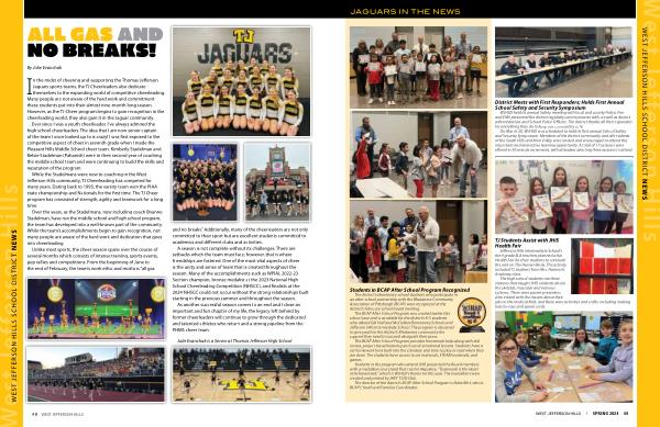 While the Stadelmans were new to coaching in the West Jefferson Hills community , TJ Cheerleading has competed for many years . Dating back to 1995 , the varsity team won the PIAA state championship and Nationals for the first time . The TJ Cheer program has consisted of strength , agility and teamwork for a long time .