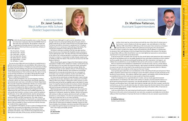 As I close out my second year as Superintendent , I want to thank Dr . Patterson for his time , dedication and commitment to the West Jefferson Hills School District . Although he will be leaving us at the end of this year , he has left an indelible mark on the district in many areas . For myself as Superintendent , he has been a friend , colleague , and an assistant that made my transition into the district easy . We will miss his strong commitment to students and education .