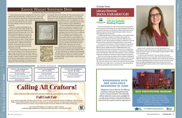 So , what are you waiting for ? Grab your library card , pack your bags , and join us as we set sail for adventure this summer at Jefferson Hills Public Library . Whether you ’ re exploring far-off lands or discovering hidden treasures closer to home , the journey starts here ! Visit jeffersonhillslibrary . org / events to learn more about everything happening this summer and to register for our events . See you soon ! est Jefferson Hills BOROUGH BOROUGH OF JEFFERSON OF JEFFERSON HILLS HILLS LIBRARY NEWS NEWS