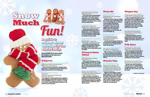 Get some fresh air and exercise by enjoying a winter walk on the 2.7-mile Bethel Park branch of the Montour Trail . Check the website for more information .