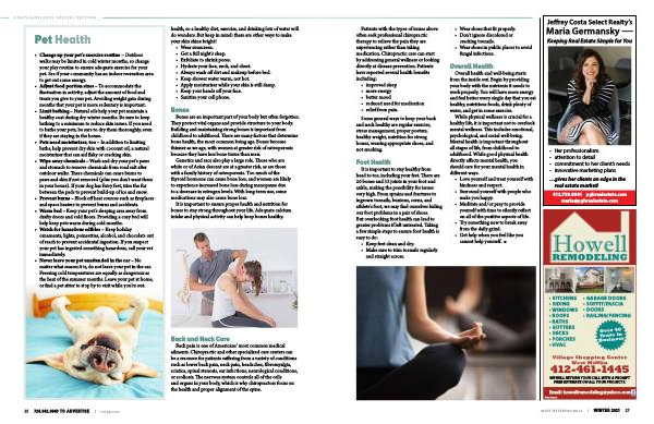• Change up your pet ’ s exercise routine – Outdoor walks may be limited in cold winter months , so change your play routine to ensure adequate exercise for your pet . See if your community has an indoor recreation area to get out some energy .