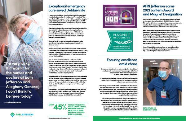 “ I don ’ t know if the people on staff then were the ones that took care of me , but I had to say thank you ,” Debbie said . “ I ’ m very lucky . If it wasn ’ t for the nurses and doctors at both Jefferson and Allegheny General , I don ’ t think I ’ d be here today .”