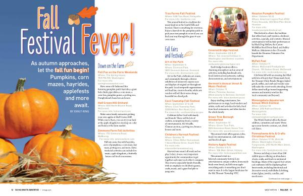 Pennsylvania Arts & Crafts Christmas Festival When: October 17-19, 25 & 26 Where: Washington County Fairgrounds, 2151 North Main Street, Washington For more info: familyfestivals. com