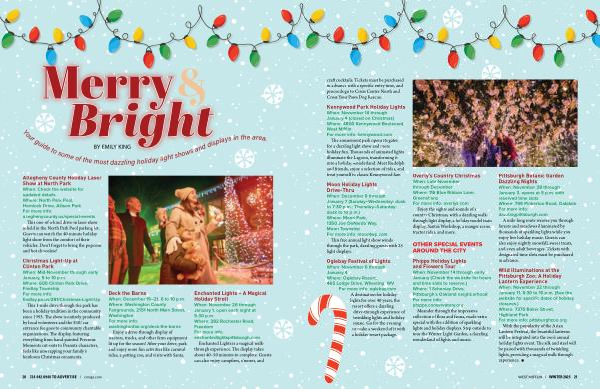 Wild Illuminations at the Pittsburgh Zoo: A Holiday Lantern Experience When: November 22 through January 11, 5:30 to 10 p. m.( See the website for specific dates of holiday closures.) Where: 7370 Baker Street, Highland Park For more info: pittsburghzoo. org With the popularity of the Asian Lantern Festival, the beautiful lanterns will be integrated into the zoo’ s annual holiday lights event. The silk and steel will be paired with thousands of twinkling lights, providing a magical walk-through experience. ■