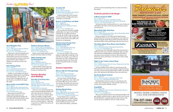 When: July 11-13 Where: Various locations, Pittsburgh’ s North Side For more info: northsidemusicfestival. com