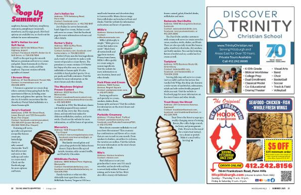 Millie’ s philosophy is simple:“ Make great ice cream that makes you smile!” Made from all-natural milk and eggs from western Pennsylvania farms, Millie’ s offers quality ice cream using inseason ingredients. Visit the website for more information on area locations, hours and other details.