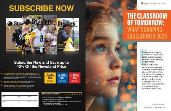 WE ARE INCREASING THE AMOUNT OF EXCLUSIVE CONTENT IN EACH ISSUE. We will now incorporate unique editorial pieces from experts like Steelers Radio Network host Mike Prisuta, as well as Matt Williamson of Steelers Nation Radio. These editorial voices join 3 favorites like Bob Labriola, Teresa Varley and Jim Wexell.