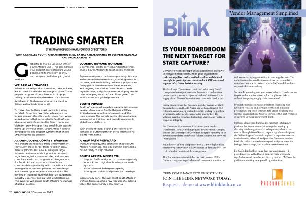 ProcureSense has assisted corporates in localising over R5 billion to SMEs and saving more than R1 billion in procurement expenses through data-driven sourcing and supplier diversification. Now, we introduce the next evolution of integrity-driven procurement: Blink.