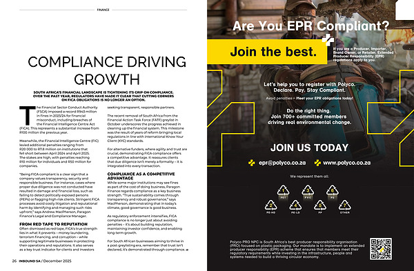 SOUTH AFRICA’ S FINANCIAL LANDSCAPE IS TIGHTENING ITS GRIP ON COMPLIANCE. OVER THE PAST YEAR, REGULATORS HAVE MADE IT CLEAR THAT CUTTING CORNERS ON FICA OBLIGATIONS IS NO LONGER AN OPTION.