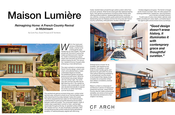 Within the manicured enclave of Midstream Estate, a family home is being gently shepherded into its next chapter. The brief arrived with the kind of nuance that makes architectural work meaningful: create a contemporary space where new memories can be formed without erasing the old. This renovation needed to honour the past while embracing a more refined future.