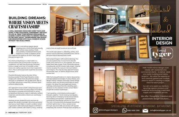 “ I am sensitive, committed and thorough,” Cherylin explains.“ I love creating new spaces, learning about emerging trends and products, and meeting new people. I look forward to creating the ideal design solution for you.” The result is homes that photograph beautifully and feel right to live in. Here, luxury comes through care and craft, not excess, with spaces shaped by the comfort of things done properly. IB