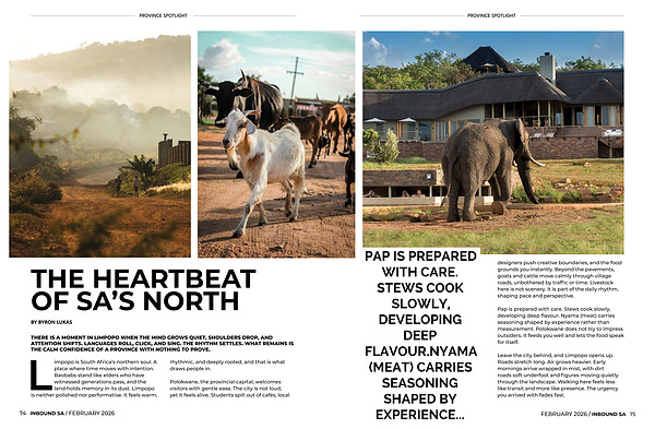 THERE IS A MOMENT IN LIMPOPO WHEN THE MIND GROWS QUIET, SHOULDERS DROP, AND ATTENTION SHIFTS. LANGUAGES ROLL, CLICK, AND SING. THE RHYTHM SETTLES. WHAT REMAINS IS THE CALM CONFIDENCE OF A PROVINCE WITH NOTHING TO PROVE.
