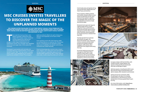 MSC CRUISES INVITES TRAVELLERS TO PLAN THEIR PERFECT HOLIDAY WHILE EMBRACING THE UNEXPECTED MOMENTS THAT MAKE CRUISING WITH THE LINE UNFORGETTABLE. WITH 23 MODERN SHIPS VISITING OVER 300 DESTINATIONS WORLDWIDE IN 2026, GUESTS ENJOY CHOICE, COMFORT, AND DISCOVERY AT SEA.