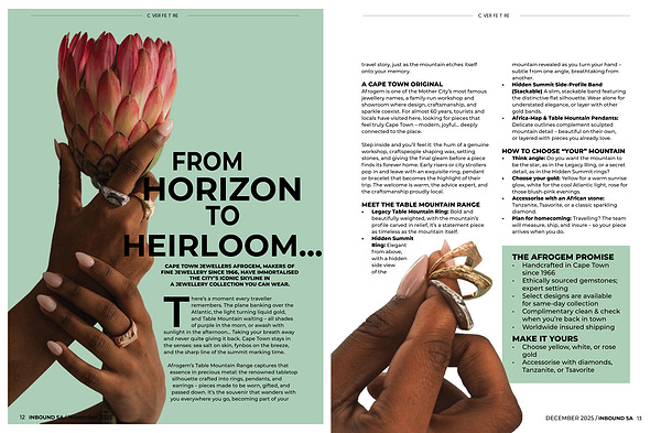 Afrogem is one of the Mother City’ s most famous jewellery names, a family-run workshop and showroom where design, craftsmanship, and sparkle coexist. For almost 60 years, tourists and locals have visited here, looking for pieces that feel truly Cape Town – modern, joyful … deeply connected to the place.