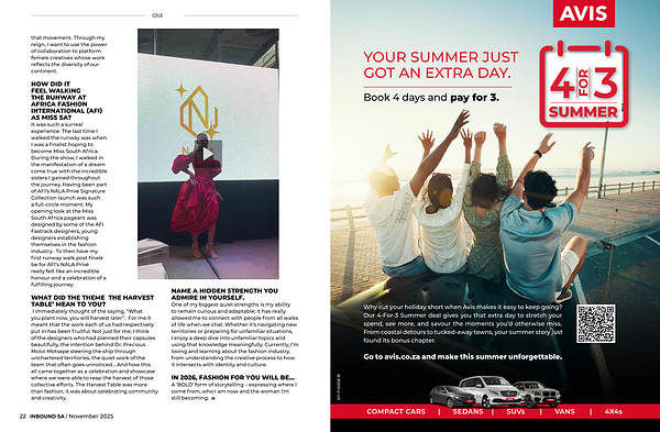 It was such a surreal experience. The last time I walked the runway was when I was a finalist hoping to become Miss South Africa. During the show, I walked in the manifestation of a dream come true with the incredible sisters I gained throughout the journey. Having been part of AFI’ s NALA Privé Signature Collection launch was such a full-circle moment. My opening look at the Miss South Africa pageant was designed by some of the AFI Fastrack designers, young designers establishing themselves in the fashion industry. To then have my first runway walk post finale be for AFI’ s NALA Privé really felt like an incredible honour and a celebration of a fulfilling journey.