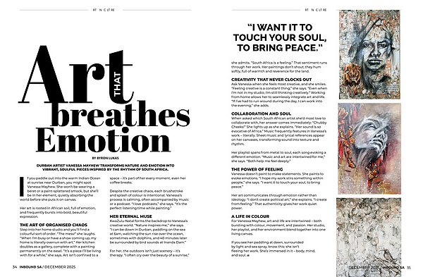 DURBAN ARTIST VANESSA MAYHEW TRANSFORMS NATURE AND EMOTION INTO VIBRANT, SOULFUL PIECES INSPIRED BY THE RHYTHM OF SOUTH AFRICA.