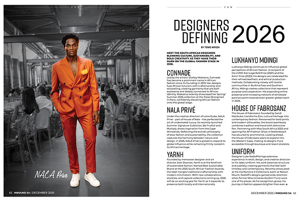 MEET THE SOUTH AFRICAN DESIGNERS BLENDING CULTURE, SUSTAINABILITY, AND BOLD CREATIVITY AS THEY MAKE THEIR MARK ON THE GLOBAL FASHION STAGE IN 2026.