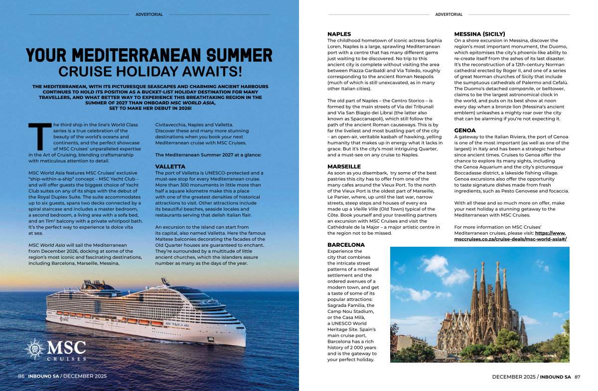THE MEDITERRANEAN, WITH ITS PICTURESQUE SEASCAPES AND CHARMING ANCIENT HARBOURS CONTINUES TO HOLD ITS POSITION AS A BUCKET-LIST HOLIDAY DESTINATION FOR MANY TRAVELLERS, AND WHAT BETTER WAY TO EXPERIENCE THIS BREATHTAKING REGION IN THE SUMMER OF 2027 THAN ONBOARD MSC WORLD ASIA, SET TO MAKE HER DEBUT IN 2026!