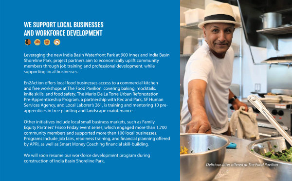 Leveraging the new India Basin Waterfront Park at 900 Innes and India Basin Shoreline Park, project partners aim to economically uplift community members through job training and professional development, while supporting local businesses.