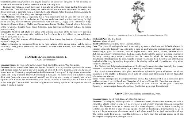 CRANESBILL Geranium maculatum, L.( U. S. Agricultural Department, Appalachia, 1971)