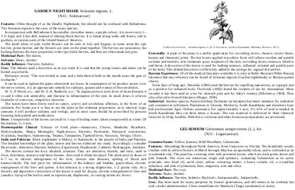GARDEN NIGHTSHADE Solanum nigrum, L.( N. E. Kovaleva, Lecheye Rasteniamy Medicina, Moscow, 1971)