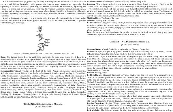 Dose: The tincture is the form in which it is employed, the dose being from 10 – 15 drops in a wineglass half full of water; to be repeated every 2 hr. as long as required. In large doses it depresses the nervous system and gives rise to convulsions and toxic symptoms such as clouded vision, doublesightedness, or complete prostration, and inability to open the eyes. This, however, completely wears off in a few hours, leaving the patient refreshed and completely restored. When the effects are induced no more of the remedy is required. Homoeopathic Clinical: Tincture of the bark of the root— Amaurosis, Anterior crural neuralgia, Aphonia, Astigmatism, Bilious fever, Brain( affections of), Cerebro spinal meningitis, Choroiditis, Colds, Constipation, Convulsions, Deafness, Dengue fever, Diarrhoea, Diphtheria, Dupuytren’ s contraction, Dysentery, Dysmenia, Emotions( affects of), Epilepsy, Eyes( affections of), Fever, Fright, Gonorrhoea, Hay-fever, Headache, Heat( effects of), Heart( diseases of), Hydro-Salpingitis, Hysteria, Influenza, Intermittent fever, Jaundice, Labour, Liver( affections of), Locomotor ataxia, Mania, Measles, Meningitis, Menstruation( painful; suppressed), Metrorrhagia, Myalgia, Neuralgia, Nystagmus, Oesophagus( stricture of), Paralysis, Paralysis agitans, Paraplegia, Pregnancy( albuminuria of), Ptosis, Puerperal convulsions, Remittent fever, Retina( detachment of), Rheumatism, Sexual excess( effects of), Sleep( disordered), Spasms, Sun headache, Sunstroke, Teething, Tic-douloureux, Tobacco( effects of), Tongue( affections of), Toothache, Tremors, Uterus( affections of), Vertigo, Voice( loss of), Writer’ s cramp.