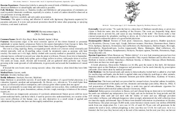 HENBANE Hyoscyamus niger, L.( N. O.: Solanaceae)