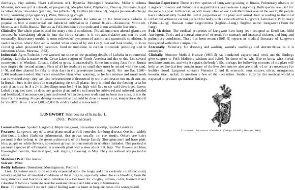 LUNGWORT Pulmonaria officinalis, L.( Vishaya Schkolla, Moscow, 1963)