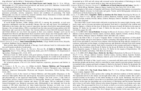 LEYEL, C. F.( 1880 – 1957), Heart-Easy— Herbs for the Heart. Illustrations by MILDRED E. ELDRIDGE. Size 9 × 6 in., 333 pp., Indexes: General, Familiar names, German, Italian, Spanish, Turkish, Arabian, Persian, Indian, Chinese, Malayan, Sanscrit; price £ 1.05 net. Publisher: Faber and Faber, London, England. 1949.