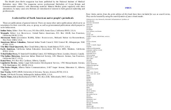 The Health from Herbs magazine has been published by the National Institute of Medical Herbalists since 1864. The magazine serves professional Herbalists of Great Britain and Commonwealth countries, with interesting material. Materia Medica given regularly with short annotations. In many cases new Herbals are introduced of interest to both general readership and professionals.