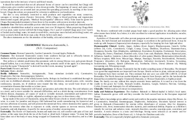 CHAMOMILE Matricaria chamomilla, L.( G. N. Kotukov, Lekarstevennye, Kiev, 1964)