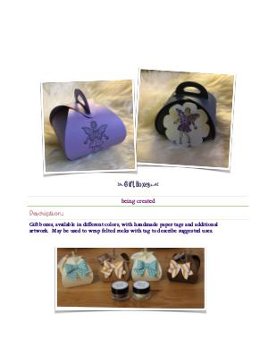 Gift boxes, available in diļ¬erent colors, with handmade paper tags and additional