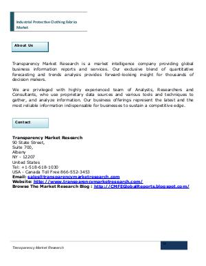 Transparency Market Research 90 State Street, Suite 700, Albany NY- 12207 United States Tel: + 1-518-618-1030 USA- Canada Toll Free 866-552-3453 Email: sales @ transparencymarketresearch. com Website: http:// www. transparencymarketresearch. com / Browse The Market Research Blog: http:// CMFEGlobalReports. blogspot. com /