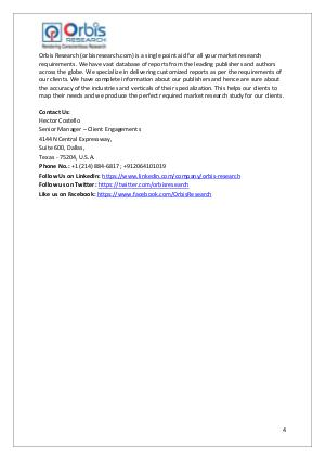 Contact Us: Hector Costello Senior Manager – Client Engagements 4144N Central Expressway, Suite 600, Dallas, Texas- 75204, U. S. A. Phone No.: + 1( 214) 884-6817; + 912064101019 Follow Us on LinkedIn: https:// www. linkedin. com / company / orbis-research Follow us on Twitter: https:// twitter. com / orbisresearch Like us on Facebook: https:// www. facebook. com / OrbisResearch