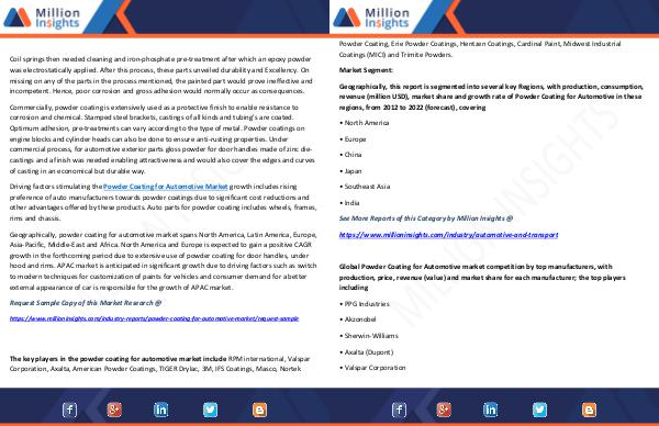 Geographically, this report is segmented into several key Regions, with production, consumption, revenue( million USD), market share and growth rate of Powder Coating for Automotive in these regions, from 2012 to 2022( forecast), covering