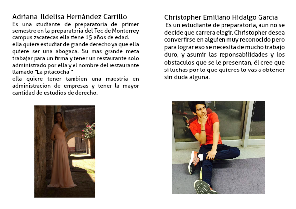 Es una studiante de preparatoria de primer semestre en la preparatoria del Tec de Monterrey campus zacatecas ella tiene 15 años de edad.